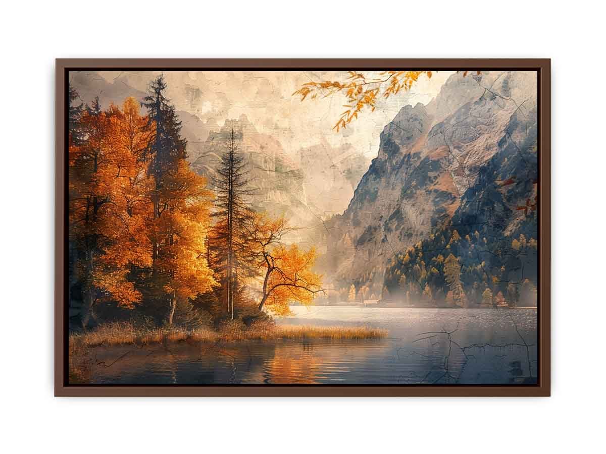 Stillness of the Golden Valley is a refined landscape artwork that balances warmth and restraint. Golden autumn trees meet calm waters under towering mountains, creating a composition that feels timeless rather than seasonal. Designed for serene interiors, this piece brings depth, calm, and understated luxury to living spaces that value quiet elegance over visual noise.