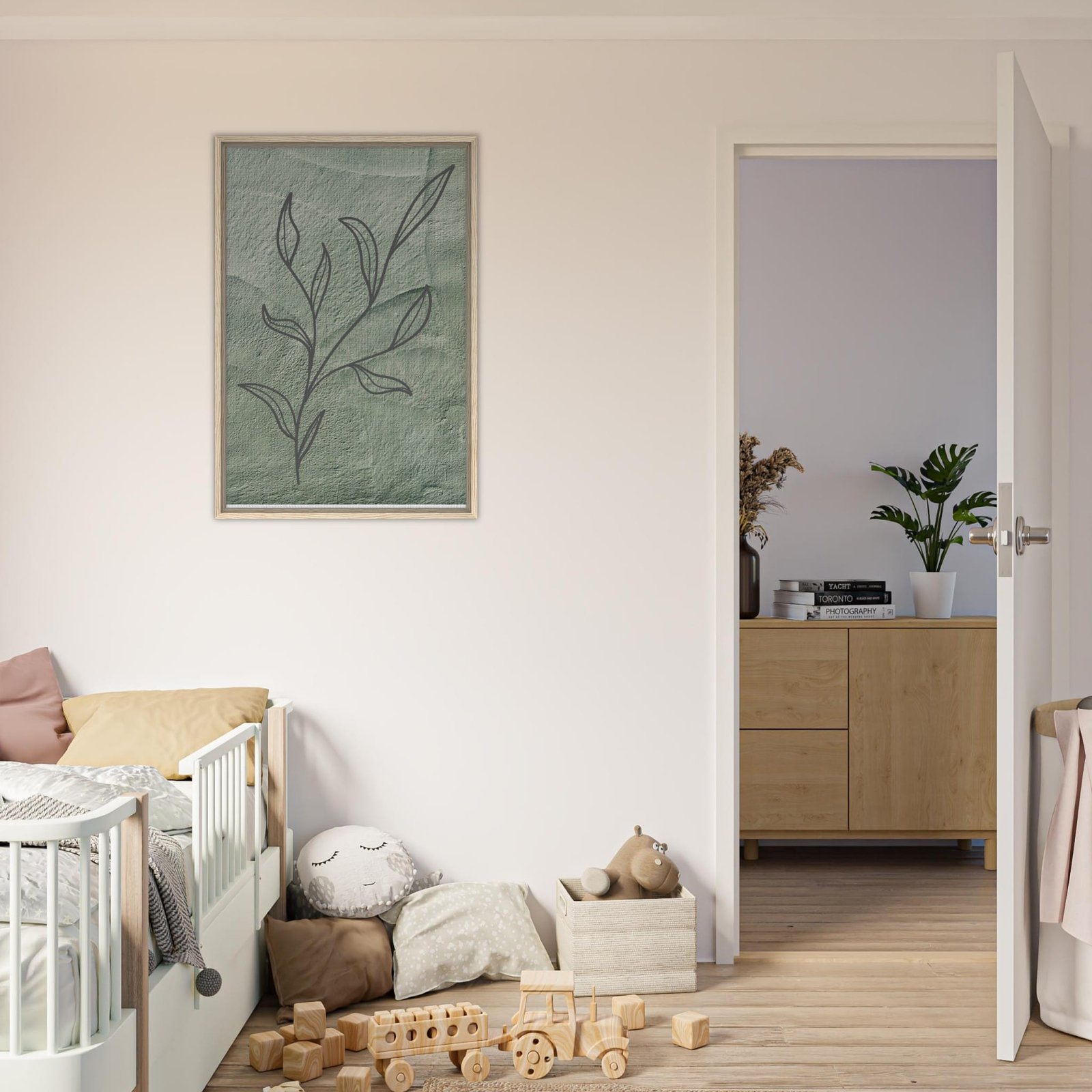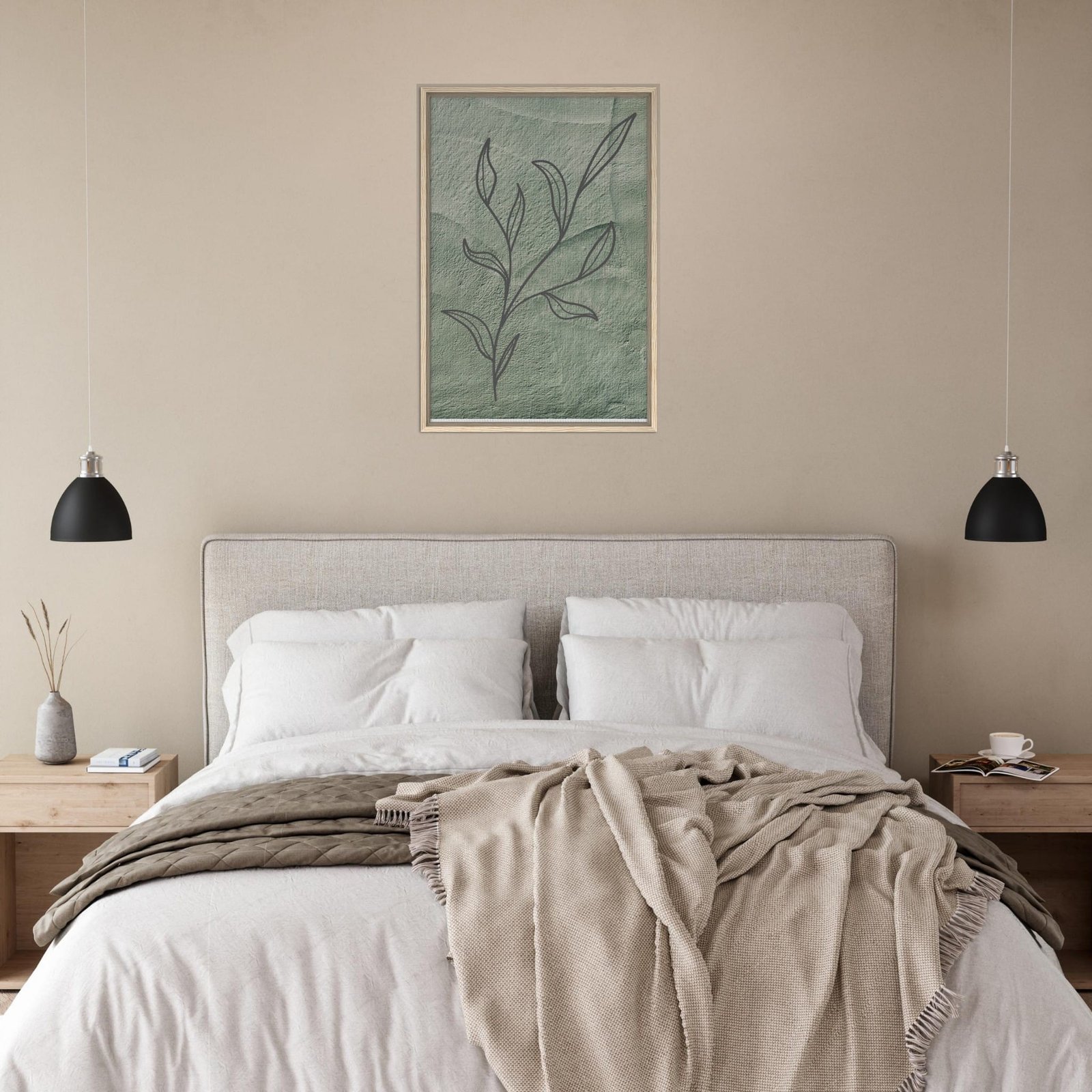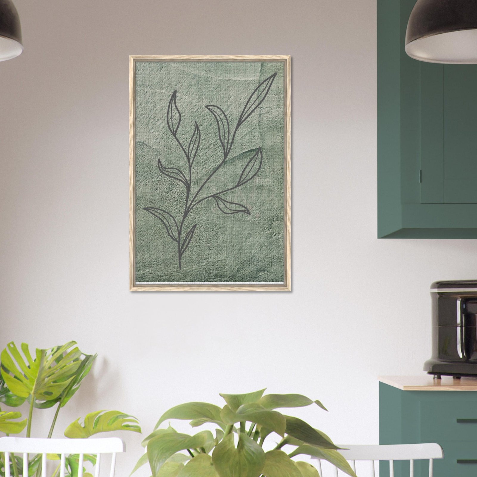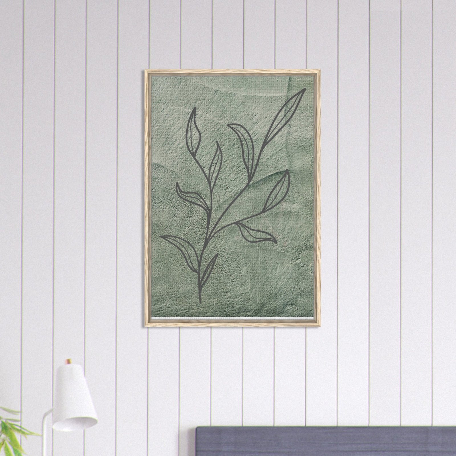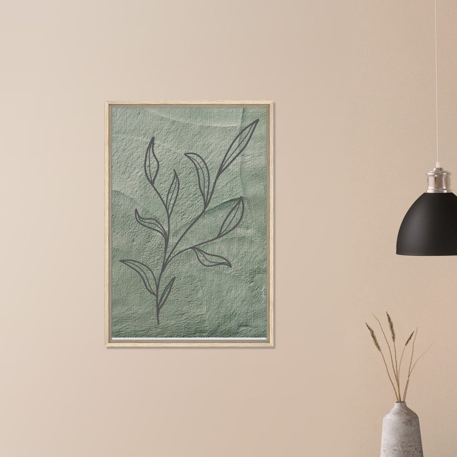 Bring nature’s tranquility into your home with this minimalist botanical artwork, elegantly printed on a high-quality, sustainable framed canvas. The soft green background complements the delicate hand-drawn leaf sketch, creating a serene atmosphere that blends beautifully with modern, bohemian, or eco-friendly decor.